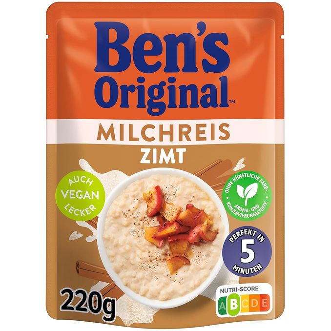 Gerade keine Zeit? 🍚 🧡 Dein Ben's Original Milchreis ist fix zubereitet – einfach erwärmen und genießen. Er ist herrlich cremig, fein gesüßt und duftet intensiv nach Zimt. Der schnelle, warme Seelenwärmer für jeden Moment! 🥄😋