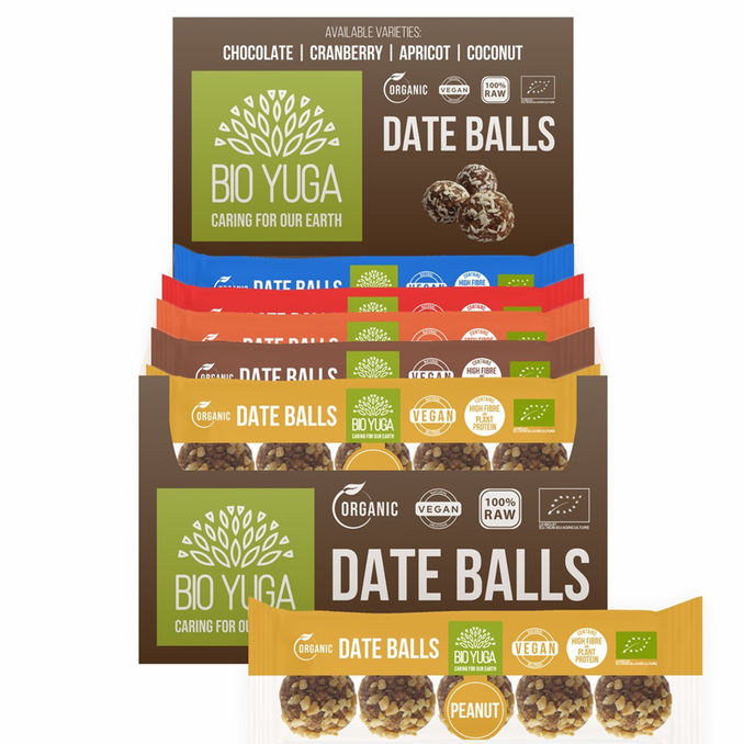 Für die extra Energie: Leckere Dattel Bites in den Sorten: Schokolade, Cranberry, Aprikose, Kokos.