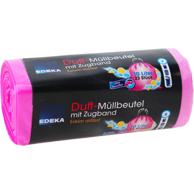 Frischer Duft in Pink! Deine 23 Beutel (10l) mit Zugband sind ideal für den Kosmetikeimer. Einfach zu verschließen und angenehm duftend. 🌸🗑️✨