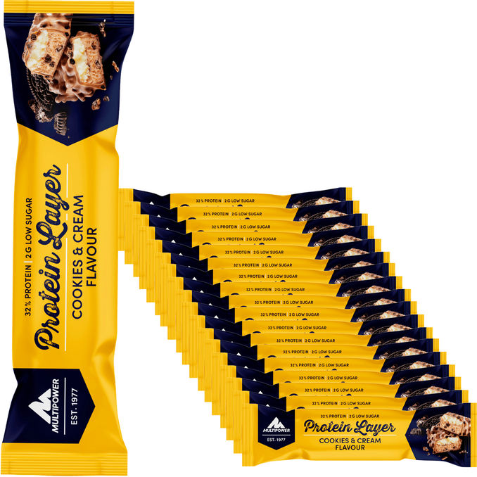 Dein extragroßer Vorrat für volle Power! Genieße 18 Riegel mit unwiderstehlichem Cookies-&-Creme-Geschmack und wertvollem Protein nach deinem Training. 🍪💪✨
