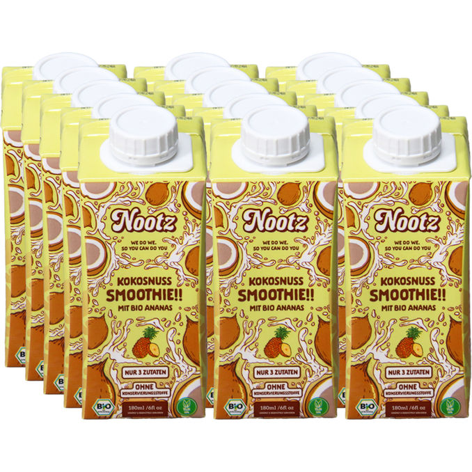 Urlaub pur in jedem Schluck! ✨ Mit dem Nootz 15-Pack Bio Kokosnuss Smoothie Ananas holst du dir das tropische Inselfeeling direkt in den Kühlschrank. Diese cremige Mischung vereint die Sanftheit der Kokosnuss mit der spritzigen Süße sonnengereifter Ananas – und das in bester Bio-Qualität.