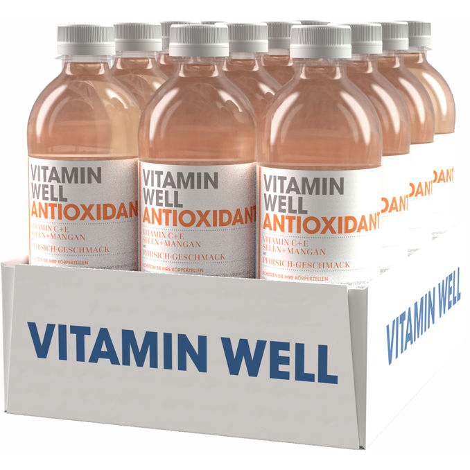Das 12-Pack Vitamin Well Antioxidant (12x500ml) ist die erfrischende Powerquelle für den ganzen Tag! 💧🍊 Mit einer speziellen Mischung aus Vitaminen und Antioxidantien sorgt es für den nötigen Energieschub und unterstützt dein Wohlbefinden. Perfekt für unterwegs oder nach dem Sport – der köstliche Durstlöscher, der mehr kann!